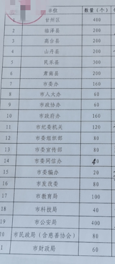 1、接收到張掖浙商集團鐘國慶捐贈一次性醫(yī)用口罩5000個,已按照市疫情防控領導小組辦公室調配單調撥至以下單位。