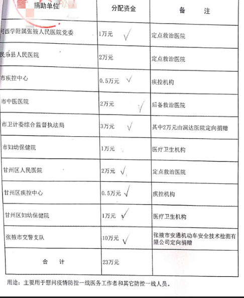 為了讓社會公眾及時了解捐贈及支出情況,張掖市慈善協(xié)會將已發(fā)放資金和物資公示↓↓↓