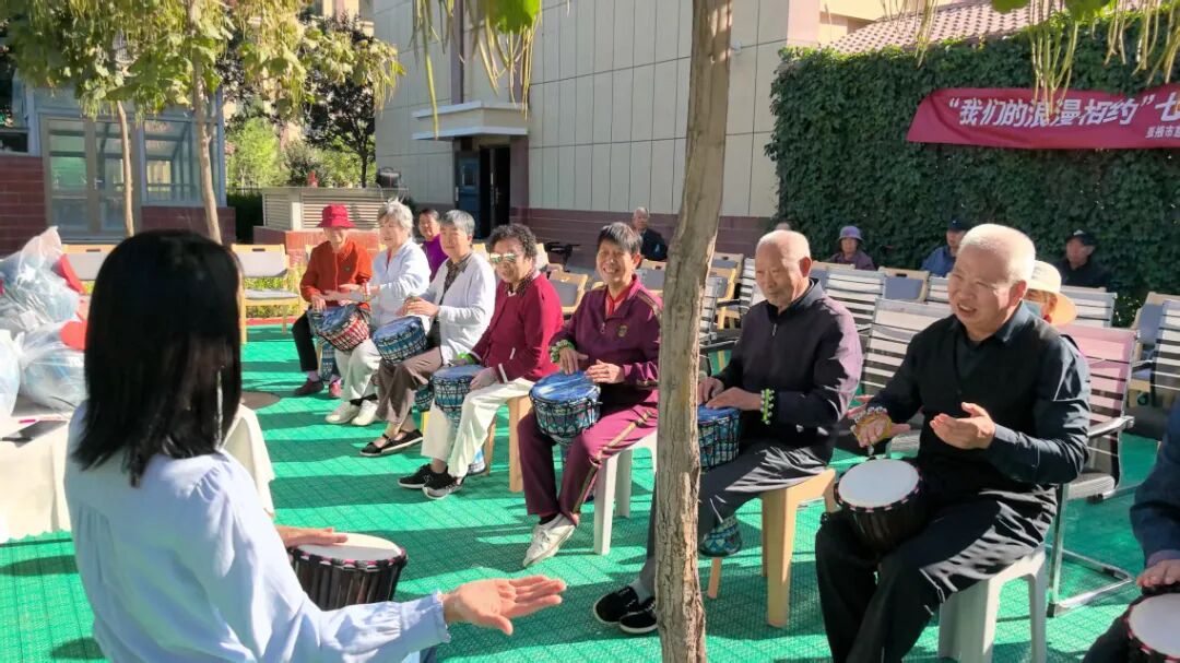 活動現(xiàn)場,伴隨著溫馨的音樂,非洲鼓表演拉開了活動序幕,輕快的節(jié)奏瞬間點燃了現(xiàn)場氣氛,將活動推向高潮。協(xié)會志愿者為老人們送去了紅棗枸杞汁、酸奶、面包等慈善慰問品。