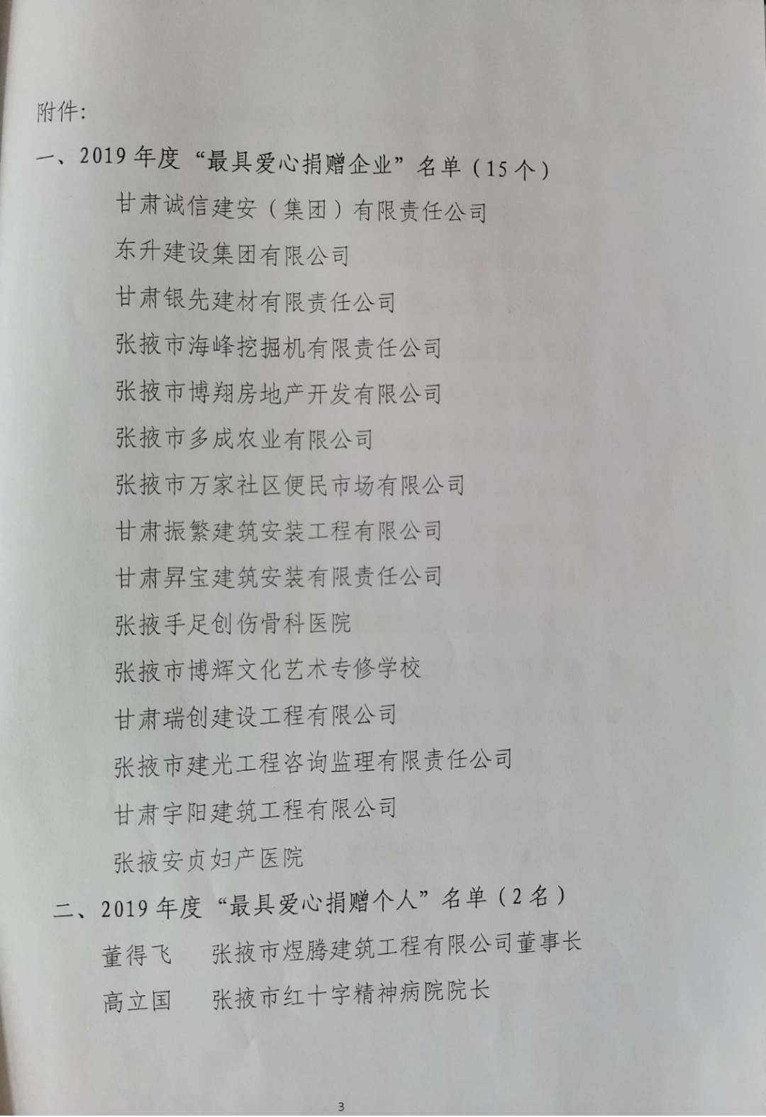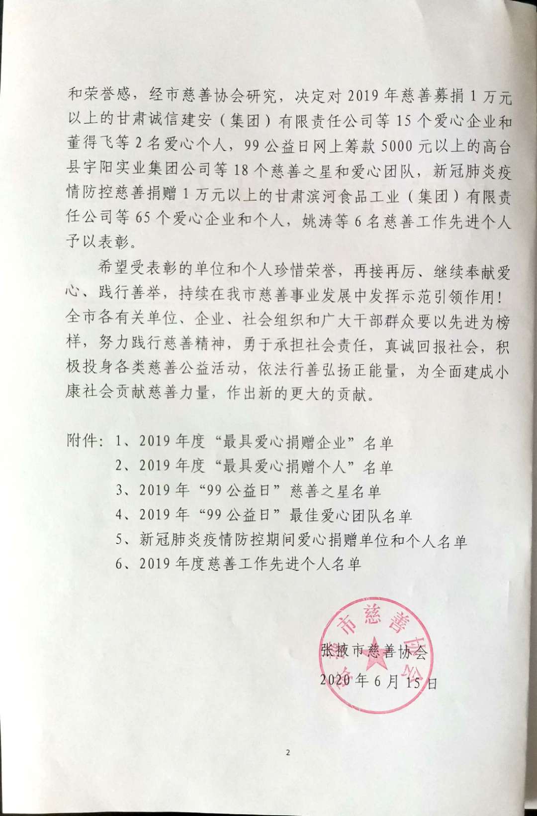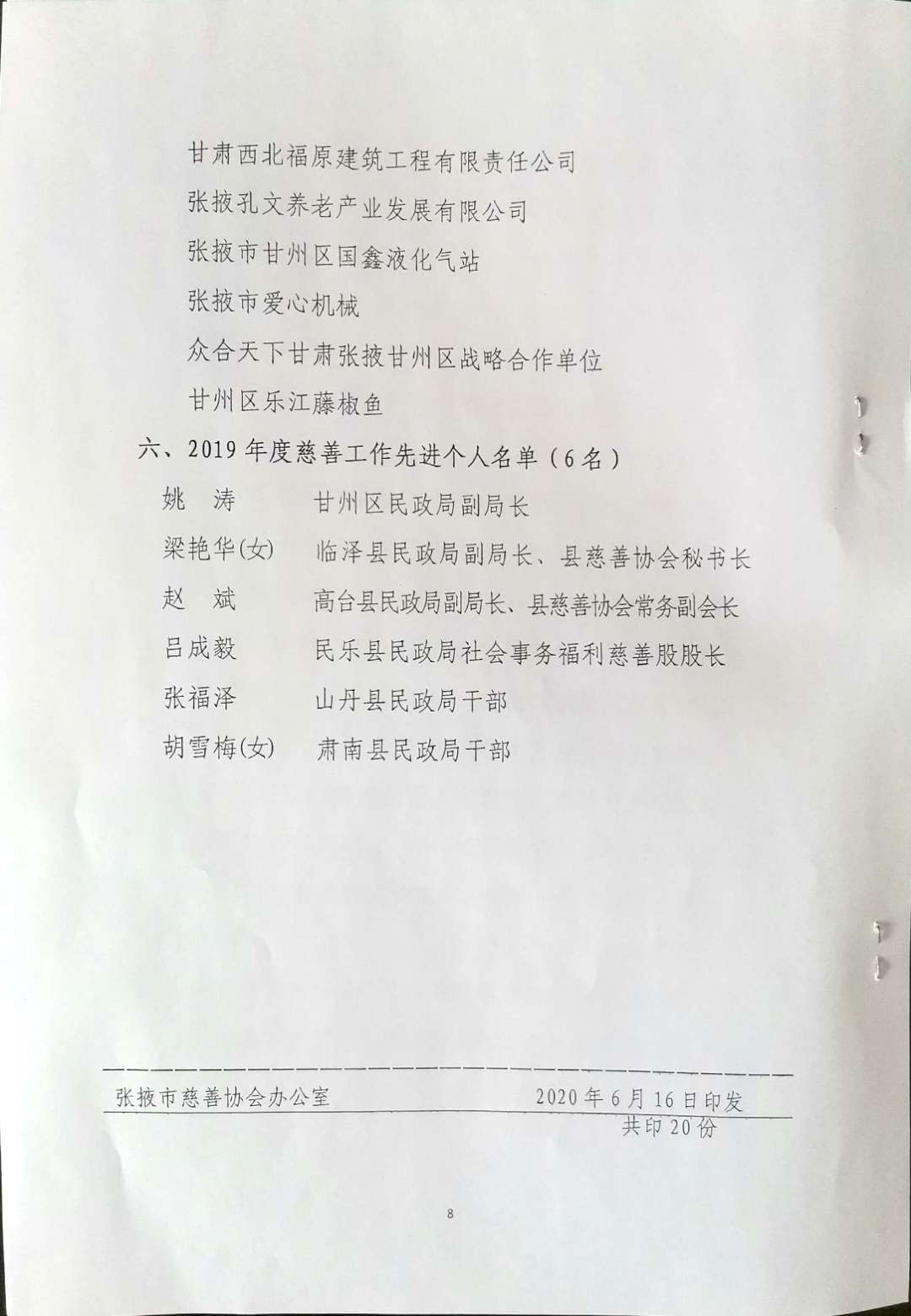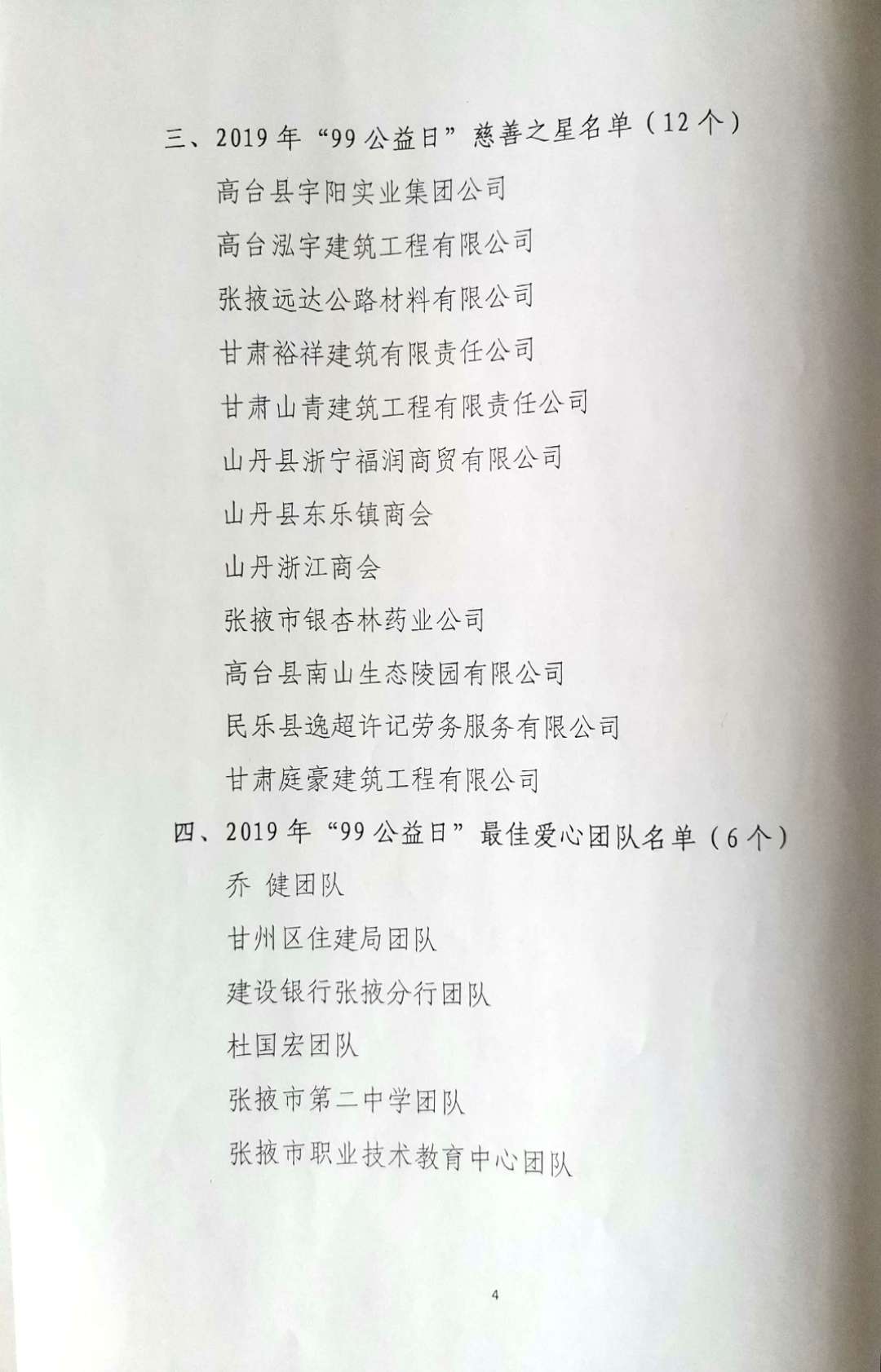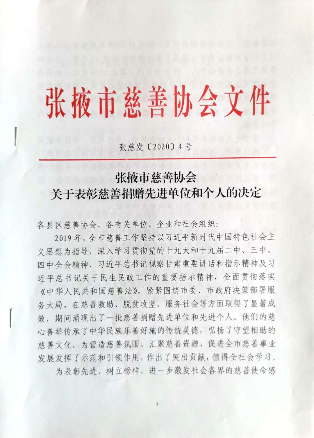 張掖市慈善協(xié)會關(guān)于表彰慈善捐贈先進單位和個人的決定